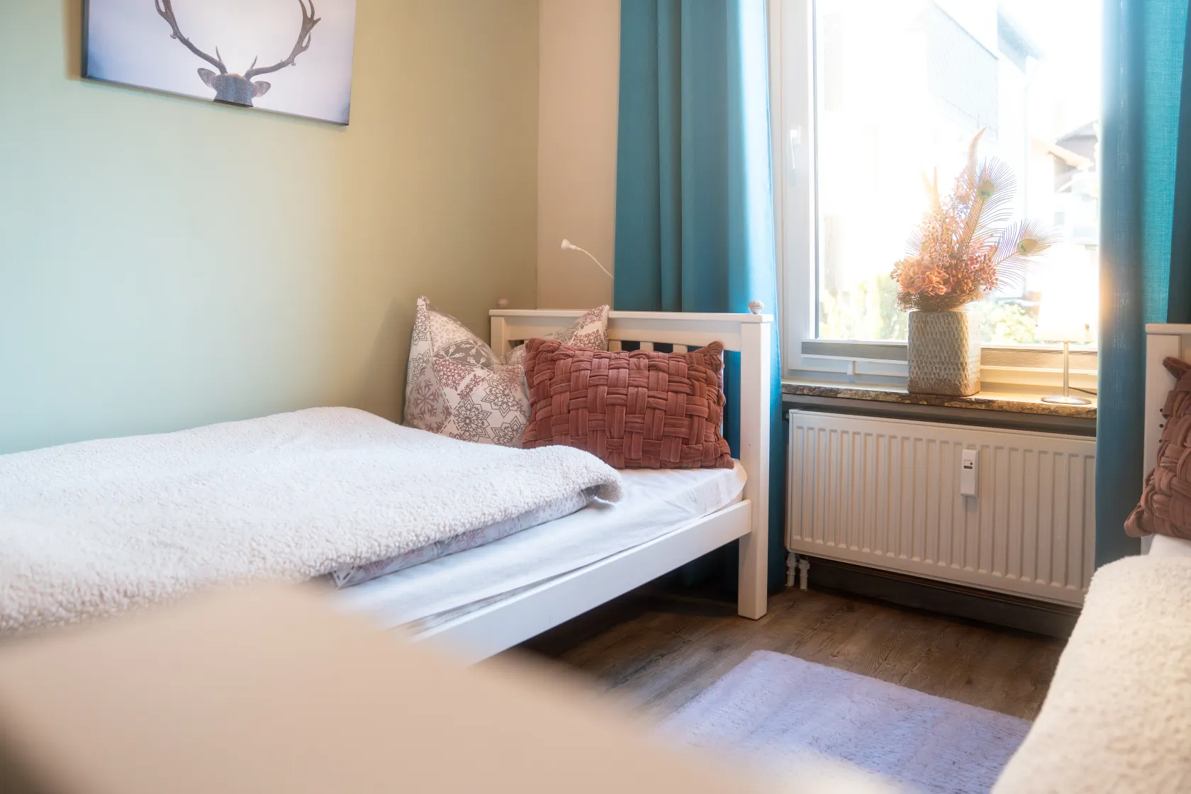 Unsere Ferienwohnung bietet Ihnen zwei Schlafzimmer mit Doppel- bzw. zwei Einzelbetten.